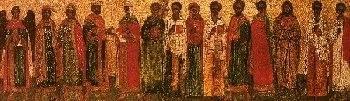 9 Depois fazemos menção dos que adormeceram, primeiro dos patriarcas, profetas, apóstolos, mártires, para que Deus, por suas preces e intercessão, aceite nossa súplica. Depois ainda rezamos pelos santos padres, bispos adormecidos e, enfim, por todos os que nos precederam, persuadidos de que será de máximo proveito para as almas, pelas quais a súplica é elevada ante a santa e tremenda vítima.